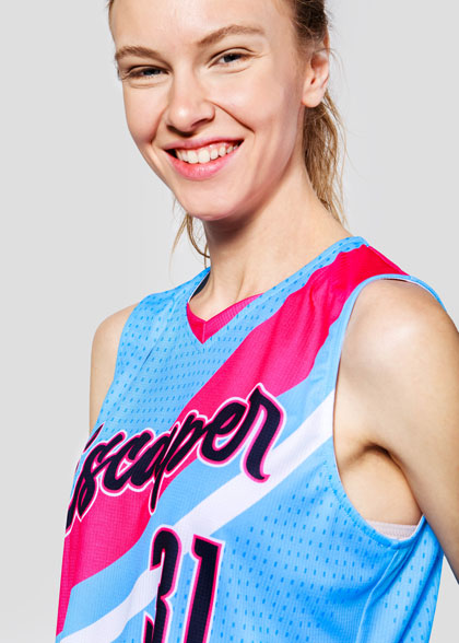 EscaperОписание: Женская односторонняя баскетбольная майка полуприлегающего силуэта. Без боковых вставок. V-образная горловина с фигурной вставкой по центру. Сублимация изделия обеспечивает возможность выбрать любые цвета и дизайн которые не выцветут за любое количество стирок. Полная сублимация — любой цвет и дизайн (уже входит в стоимость).