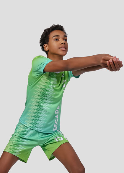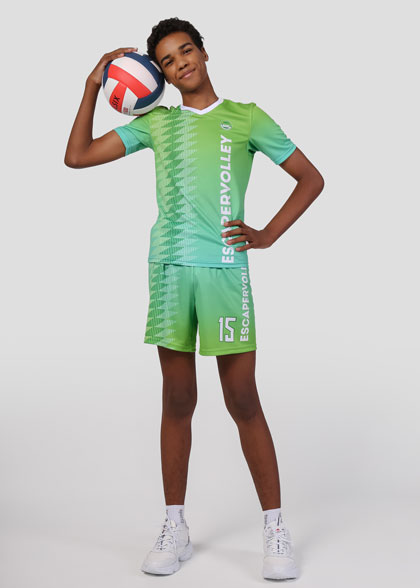 EscaperОписание: Комплект детской волейбольной формы: футболка и шорты. Футболка прямого кроя с V-образной горловиной из рибаны. Втачной рукав без манжеты. Цельнокроеные шорты средней длины с широким эластичным поясом. Внутри предусмотрен шнурок для регулировки объёма пояса. Полная сублимация на форме — любой цвет и дизайн уже входят в стоимость. Сублимация изделия позволяет выбрать любой дизайн, который выдержит многочисленные стирки без потери цвета и качественных свойств материала.